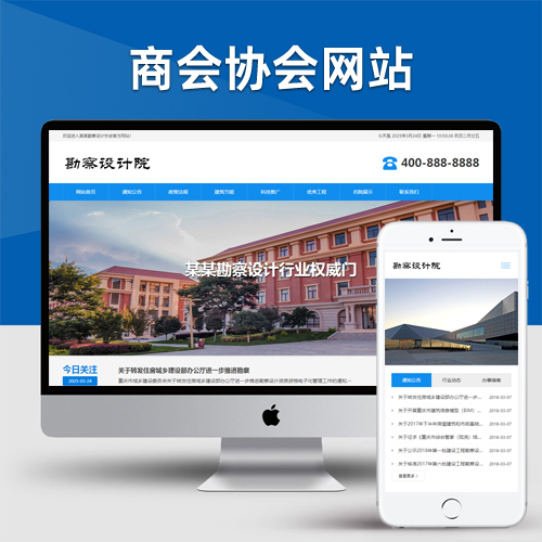 (自适应手机端)响应式勘察设计院蓝色网站pbootcms模板 单位商会协会网站源码下载