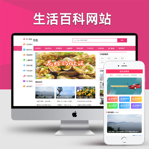 (PC+WAP)生活资讯百科门户类网站pbootcms模板 粉色生活门户网站源码下载