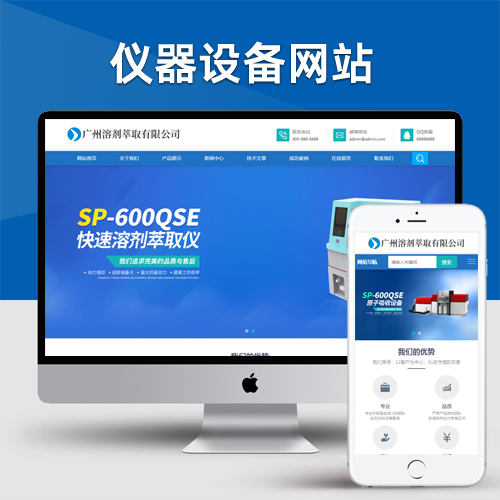 (自适应手机端)全自动溶剂萃取仪器设备类网站pbootcms模板 蓝色仪器设备网站源码下载