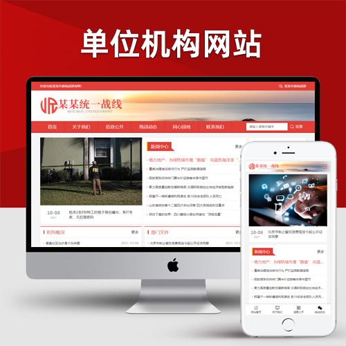 (自适应手机版)响应式统一战线单位机构类网站pbootcms模板 红色部门机构网站源码下载