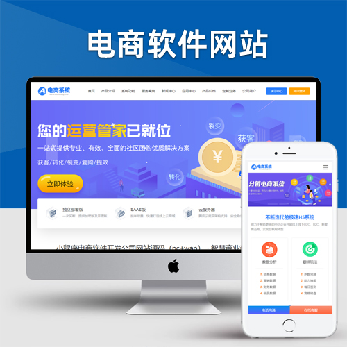 蓝色小程序网站pbootcms模板-小程序电商软件开发公司网站源码(pc+wap)